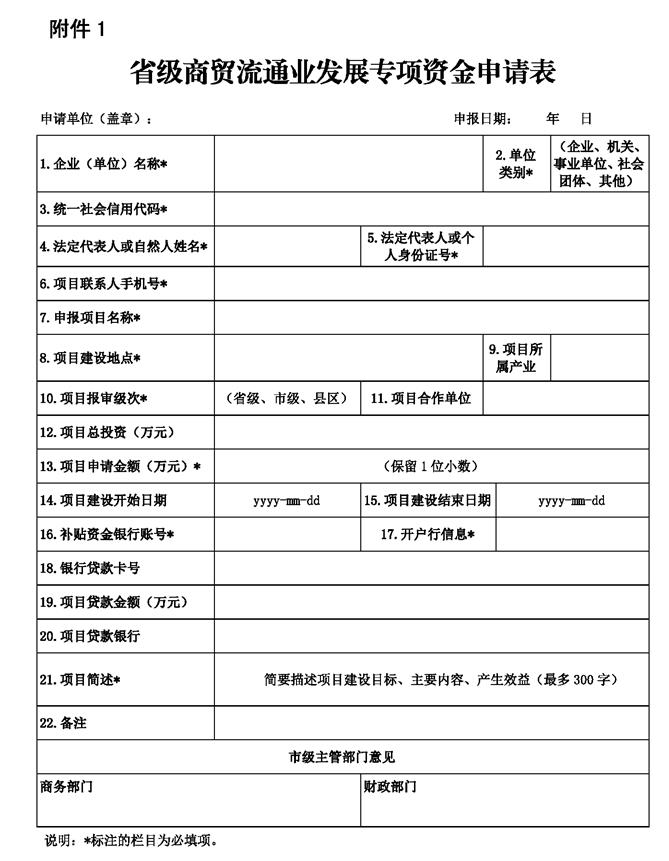 3.申報材料∶(1)省級商貿流通業發展專項資金申請表;(2)申報單位申請報告(包括市場簡要情況、主要建設內容、項目經濟和社會效益等)及政策項目申報誠實信用承諾書(法人簽名并加蓋單位公章);(3)項目主要投資明細(包括與項目建設有關的合同、支付憑證、發票或收據復印件等);(4)有關部門批準建設以及項目工程驗收報告;(5)加載統一社會信用代碼的營業執照復印件;(6)出現農產品“賣難”問題和發生重大自然災害等突發事件時,積極配合各級政府做好應急保障工作承諾函;(7)市場內外實景和內部有關建設部位的照片(注明地址、市場名稱)。